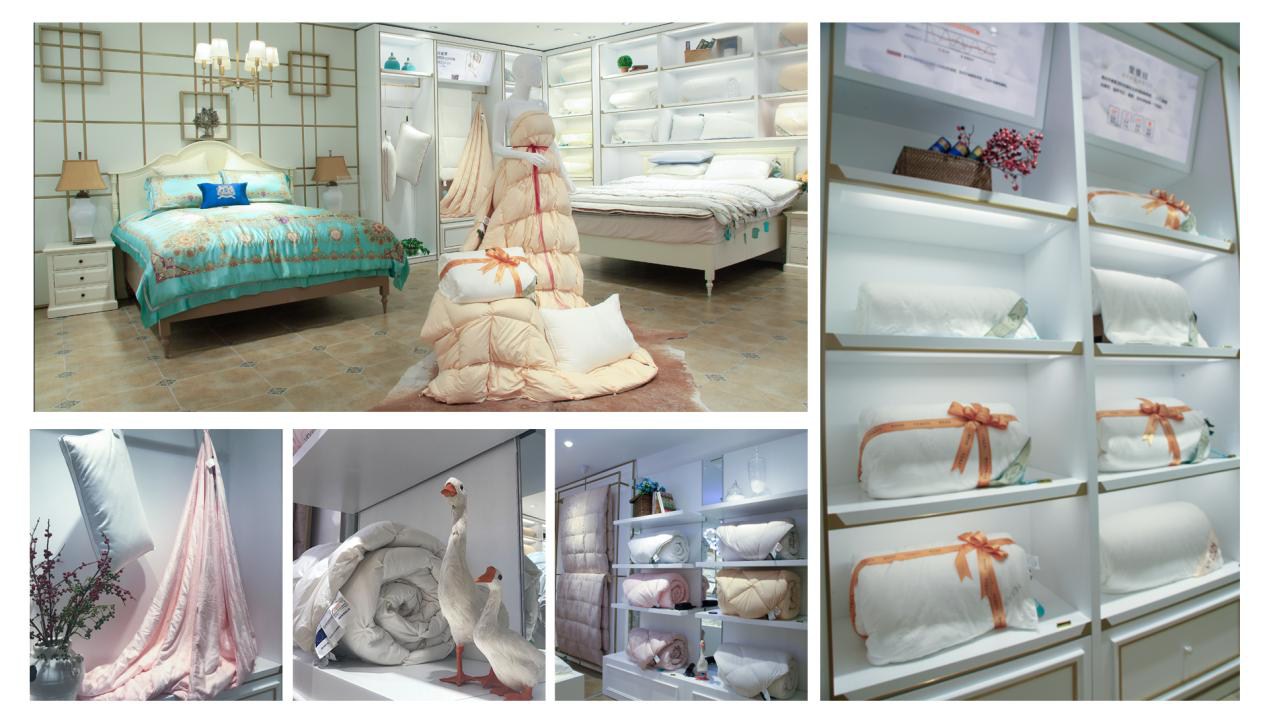 芯類(lèi)產(chǎn)品一直以來(lái)都是家紡行業(yè)銷(xiāo)售的大頭,為進(jìn)一步提高和義店芯類(lèi)產(chǎn)品銷(xiāo)售業(yè)績(jī),公司特意對(duì)一樓原有空間進(jìn)行重新規(guī)劃,開(kāi)辟了一塊80余平的獨(dú)立芯類(lèi)區(qū),芯設(shè)計(jì)上采用白色貨柜、鍍鈦金屬件、金屬玻璃柜的組合,讓整個(gè)芯類(lèi)區(qū)更加通透明亮。維科家紡主打的維科朵絨被、蠶絲被、石墨烯纖維被等都將在該區(qū)域以展床、垂掛、卷筒等不同形式進(jìn)行集中展示。此外,售價(jià)近三十萬(wàn)的鎮(zhèn)店之寶——至尊冰島雁鴨絨被,也首次亮相和義店。