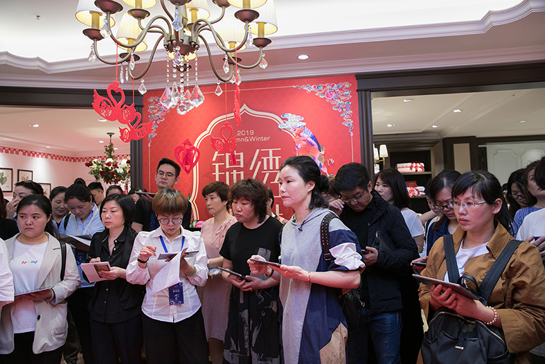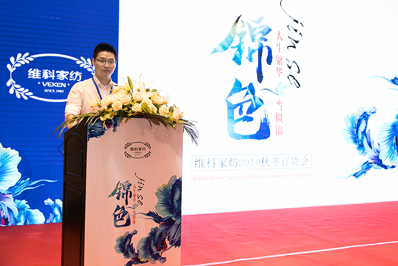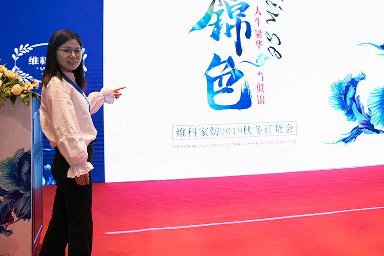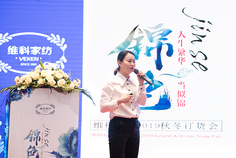 商品供應(yīng)部王巧娜帶領(lǐng)產(chǎn)品解說團隊揭開維科家紡2019秋冬新品的神秘面紗,具體展現(xiàn)“錦色——人生繁華當(dāng)似錦”這一主題,讓與會人員對新品有了更直觀和深刻的認識。