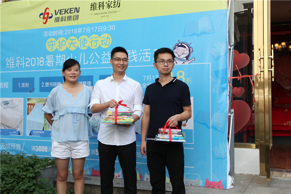 維科家紡視覺形象部經(jīng)理吳世群,代表維科家紡近百位員工,將募集到的40多冊的愛心圖書,捐贈給西門街道圖書角,希望能有更多的孩子享受到閱讀的快樂。