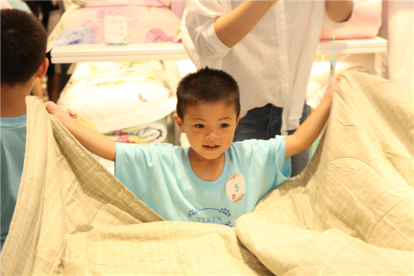 “維科鋪床小達(dá)人”作為此次活動的特色項目,利用維科匯門店自身優(yōu)勢,由店員手把手教授小朋友實用的空調(diào)被折疊技巧,讓孩子們在玩的同時,學(xué)習(xí)到有用的生活技能,在家也能幫父母做一些力所能及的事情。
